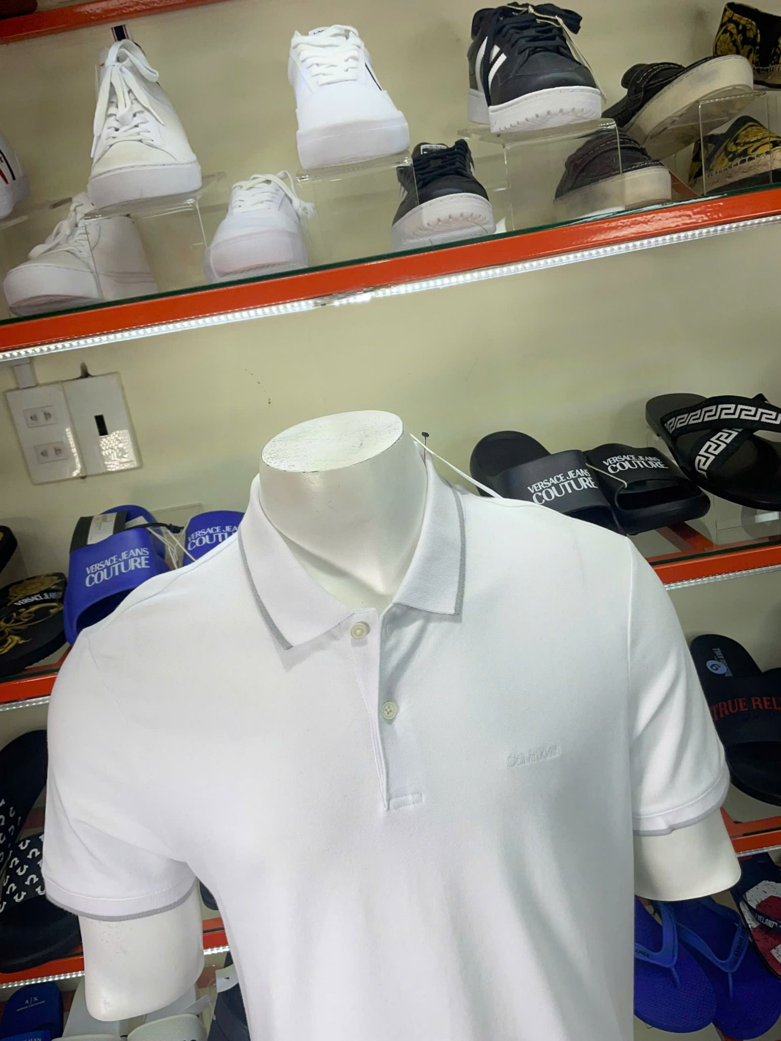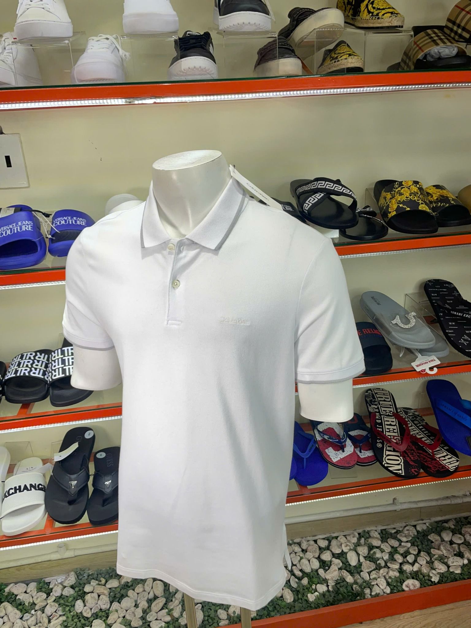 Áo Polo CK Calvin Klein Trắng Cổ Viền Xám - New - SP40601737 - TB01