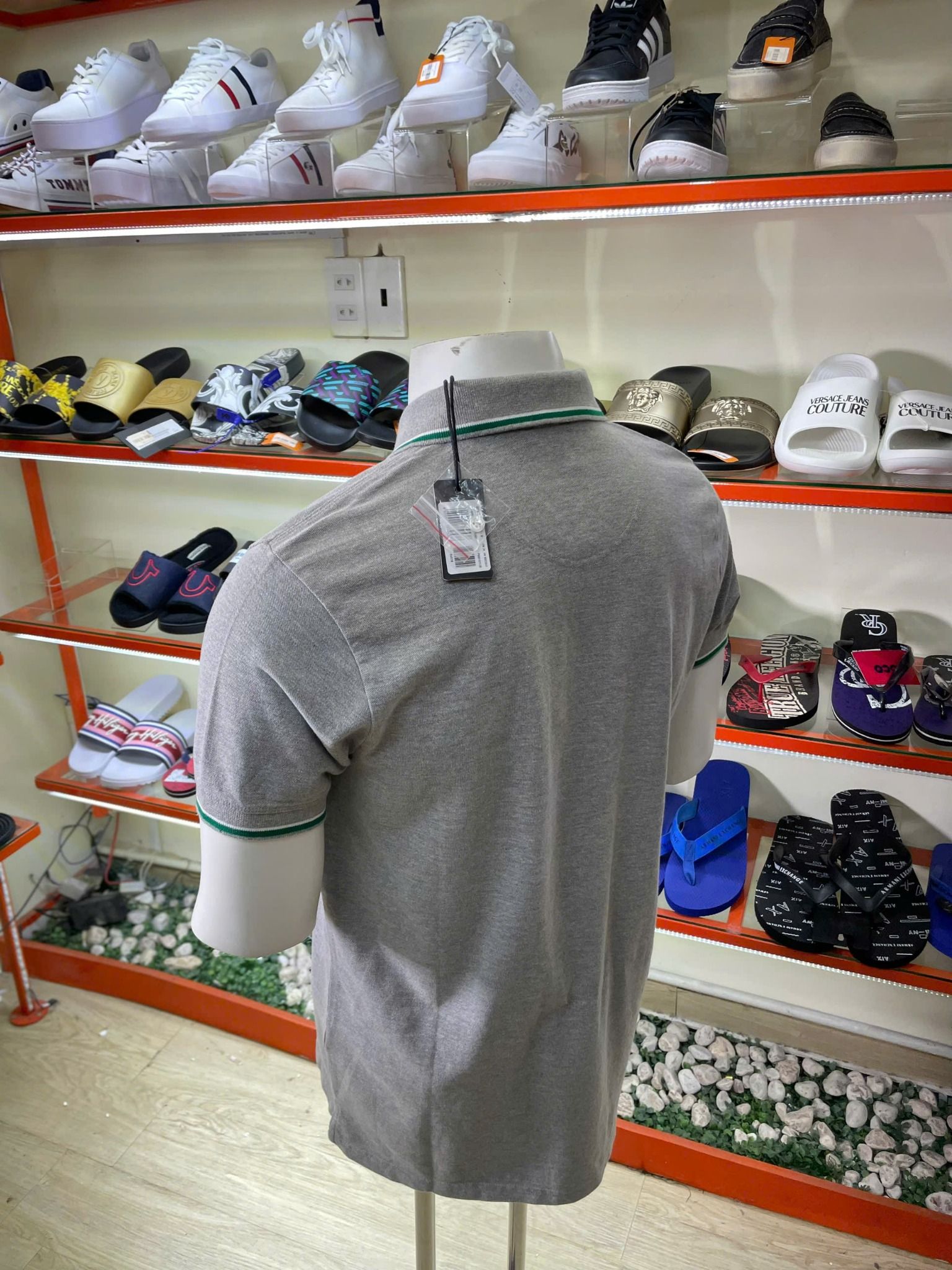 Mua Áo Polo Diesel Xám Cổ Viền Trắng Xanh - New - 00SW7C - PC04 chính hãng HCM