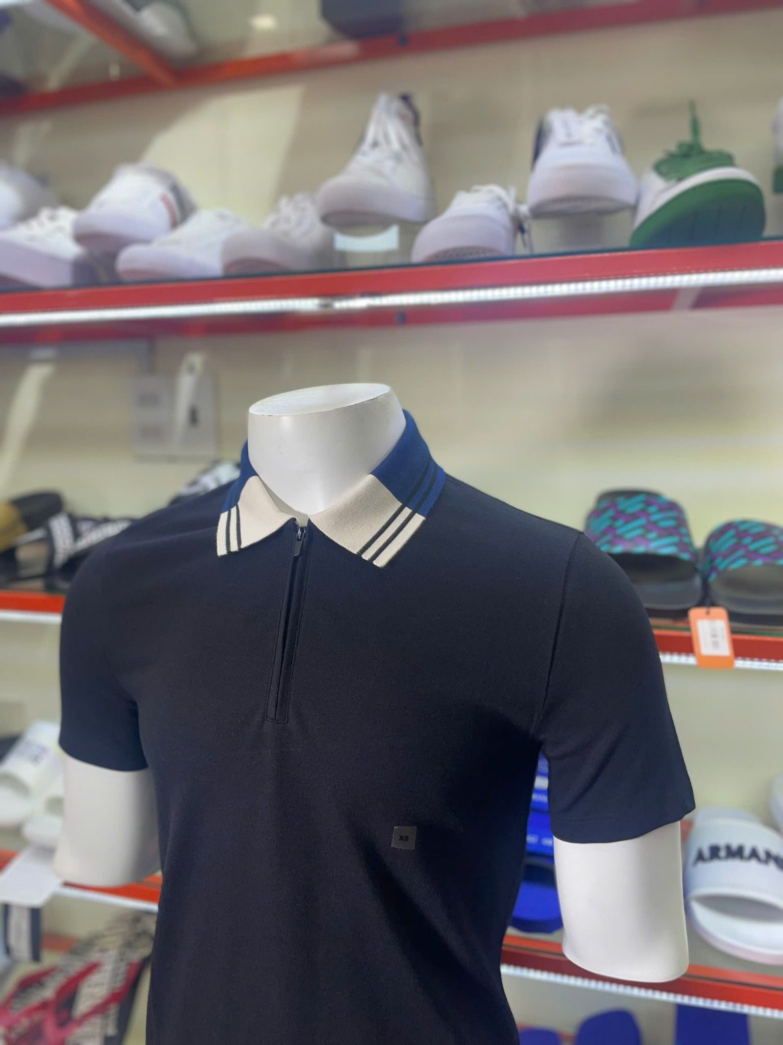 Áo Polo Express Đen Cổ Xanh Kem - New - 05049834 - TE01