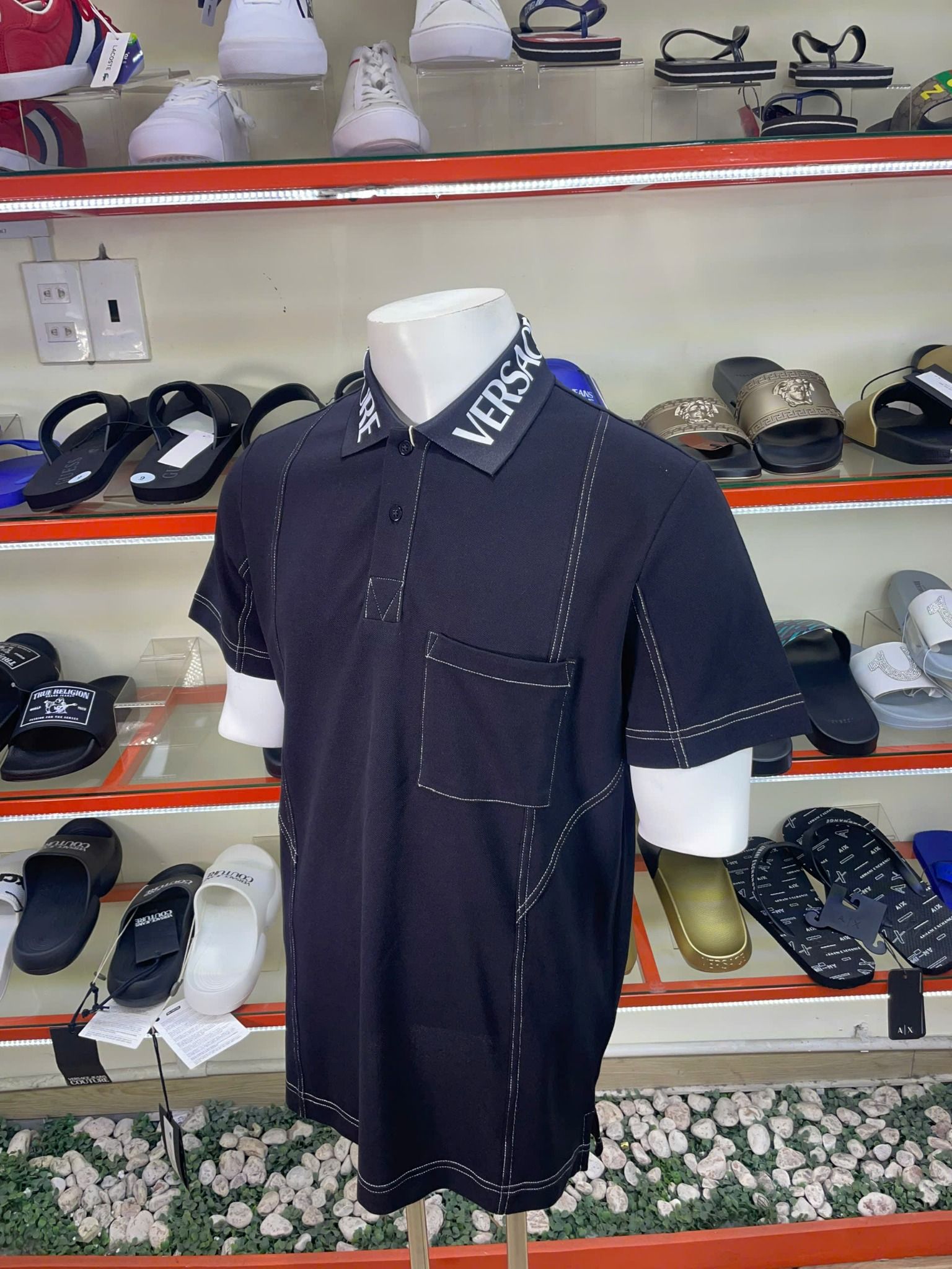 Thụy Buôn Vua cung cấp sản phẩm Áo Polo Versace Đen Cổ Chữ Trắng - New - 75GAGF12 chính hãng nhập mới từ Mỹ