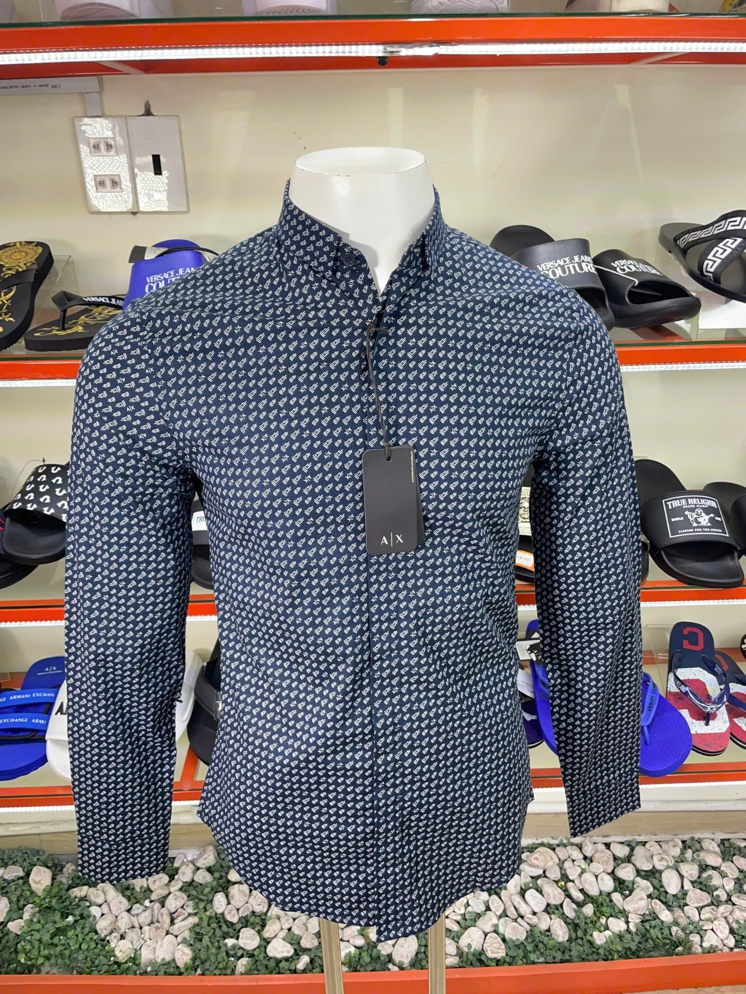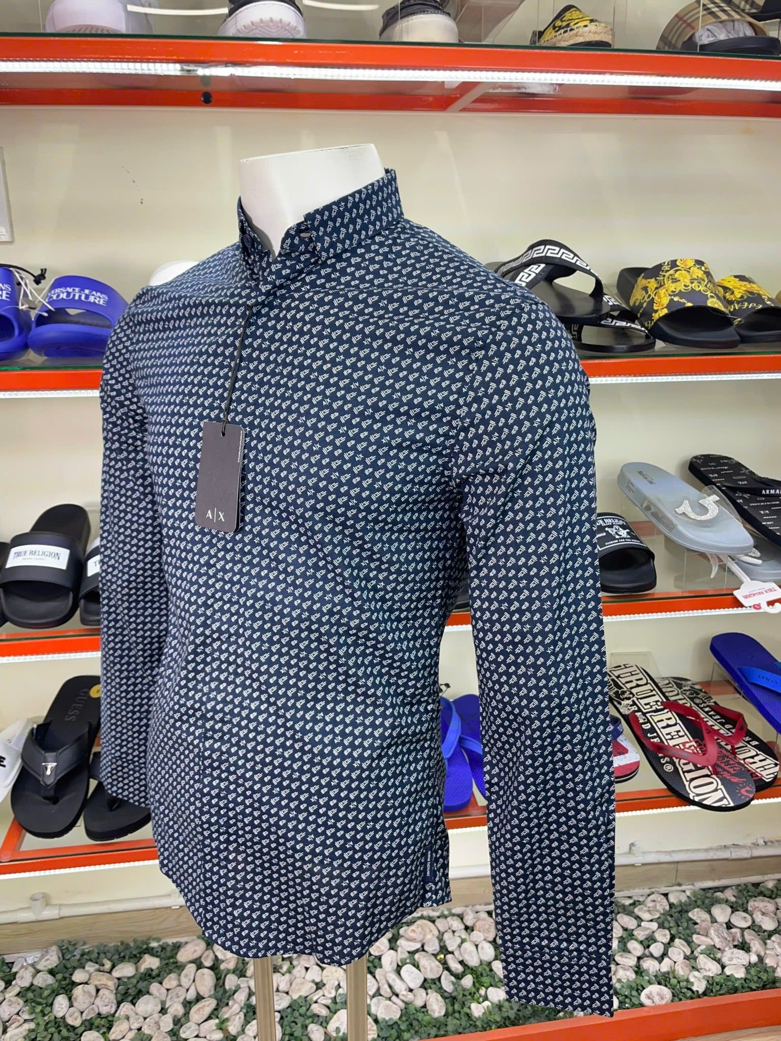 Thụy Buôn Vua cung cấp sản phẩm Áo Sơ Mi Tay Dài A/X Armani Exchange Xanh Đen Chữ Chấm Nhỏ - New - 6LZC25 ZNEAZ chính hãng nhập mới từ Mỹ