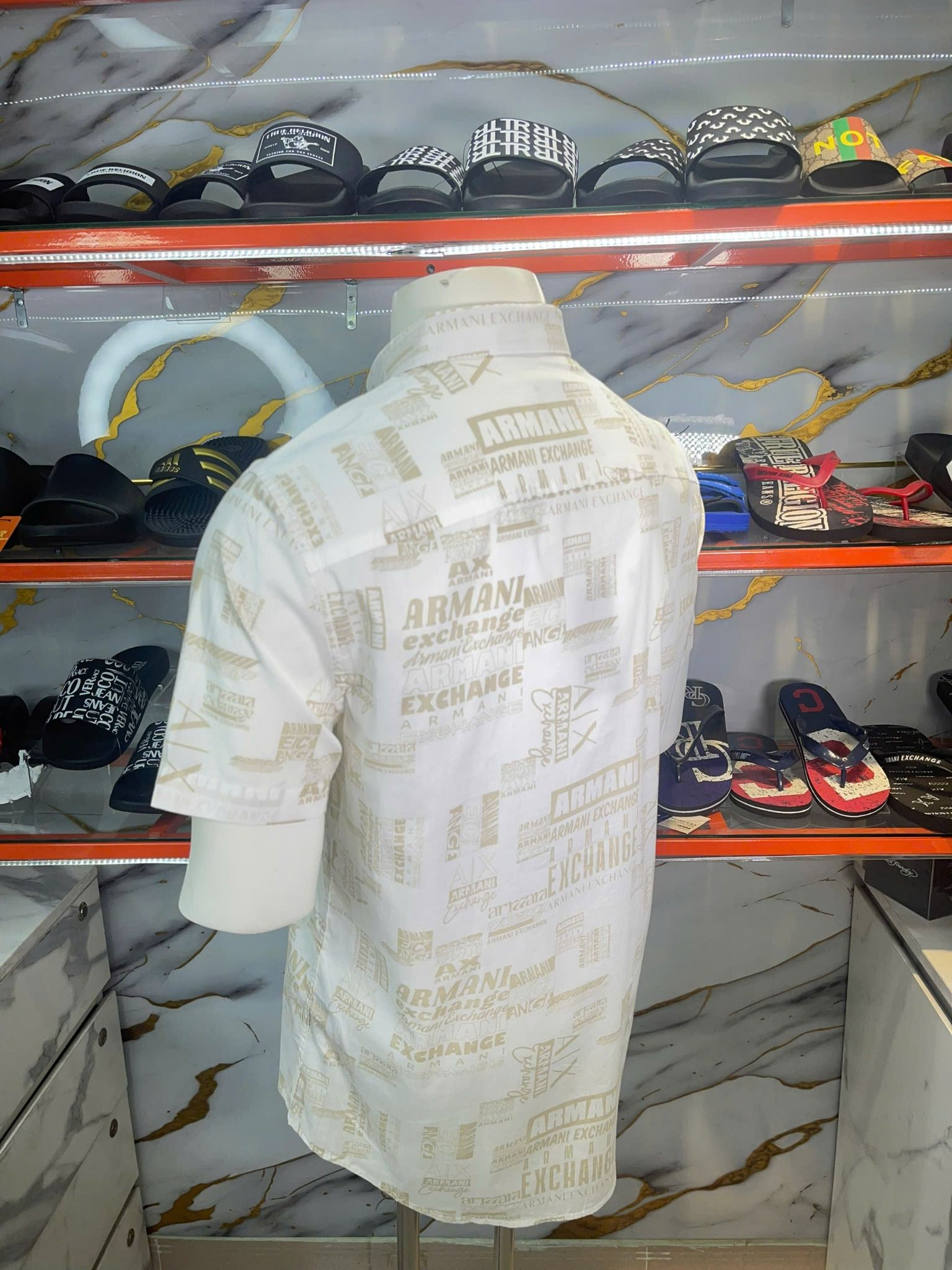 Thiên Đường Hàng Hiệu cung cấp sản phẩm Áo Sơ Mi Tay Ngắn A/X Armani Exchange Trắng Chữ Vàng - New - 3DZC04 ZNEAZ chính hãng nhập mới từ Mỹ