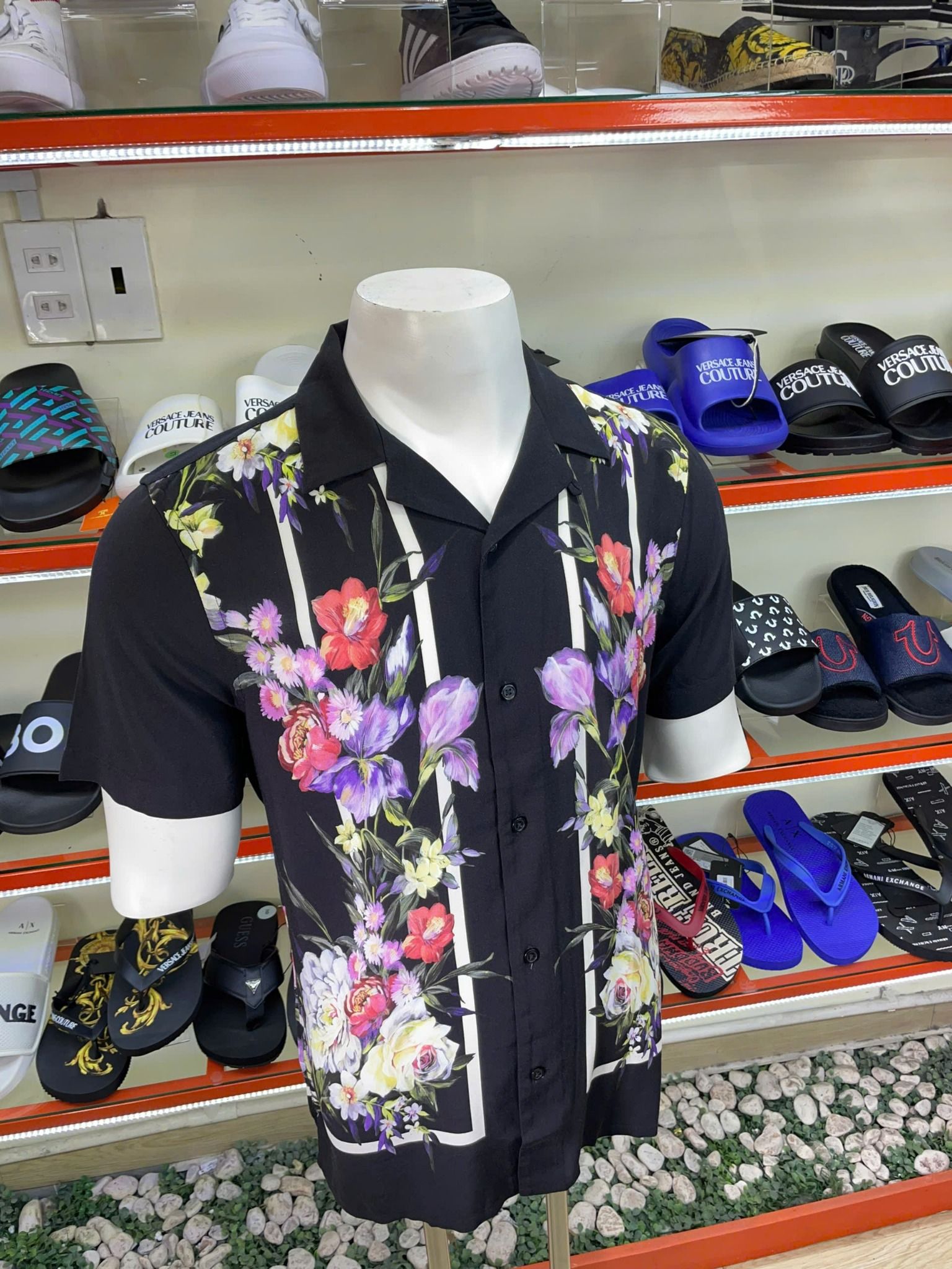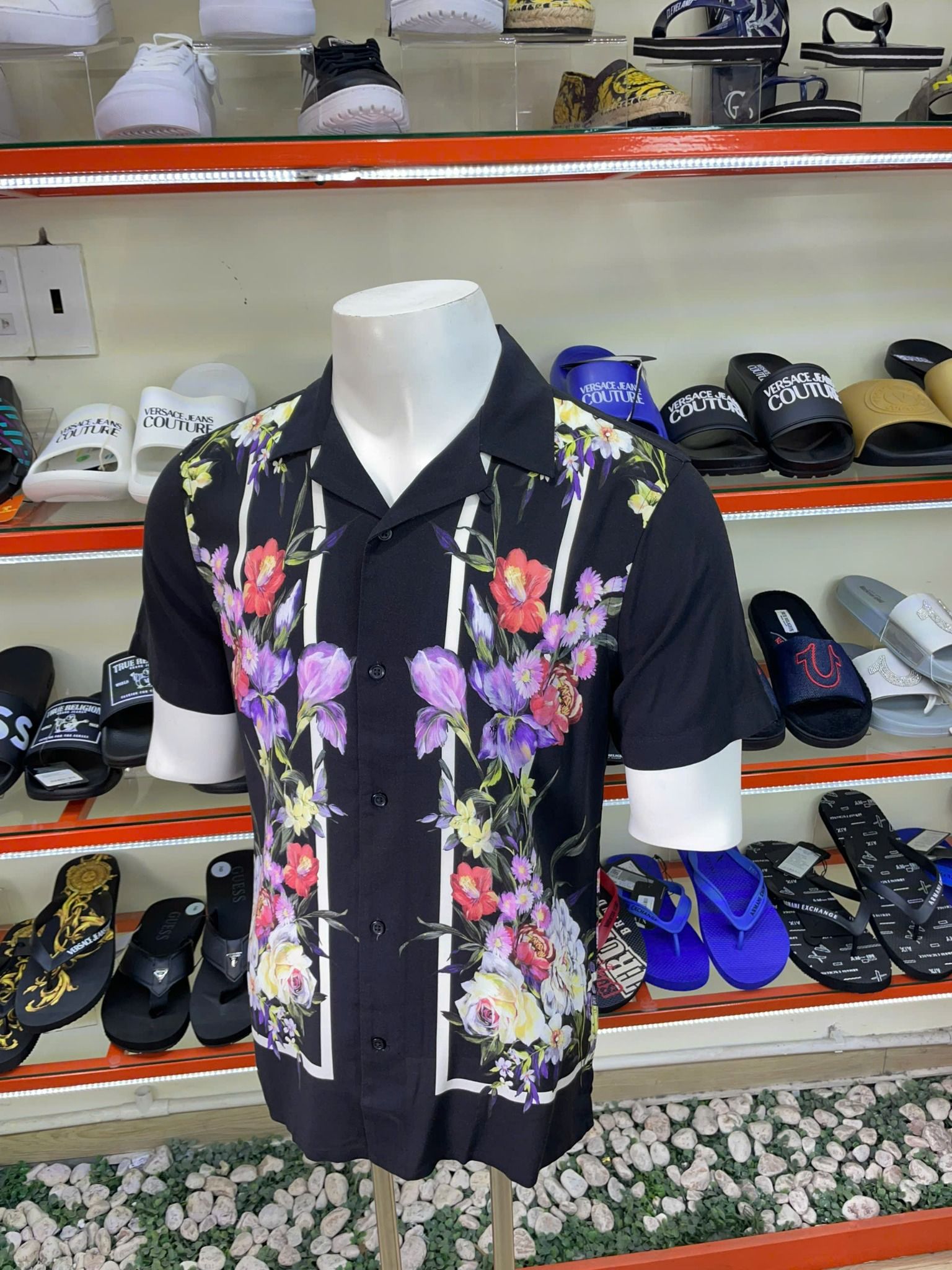 Áo Sơ Mi Tay Ngắn Express Đen Hoa Tím - New - 01698572