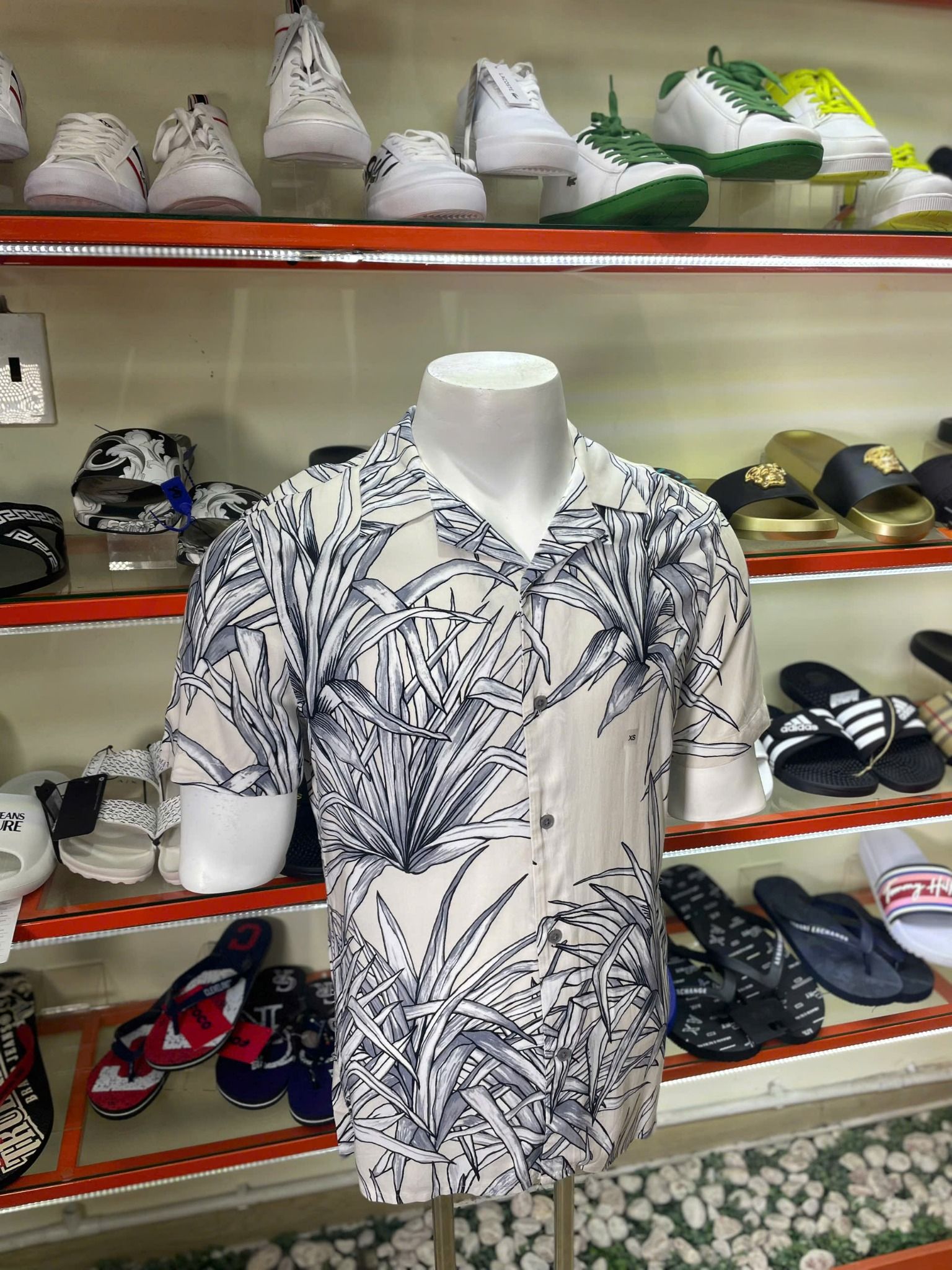 Áo Sơ Mi Tay Ngắn Express Kem Cỏ Xám - New - 01691226 - TD01