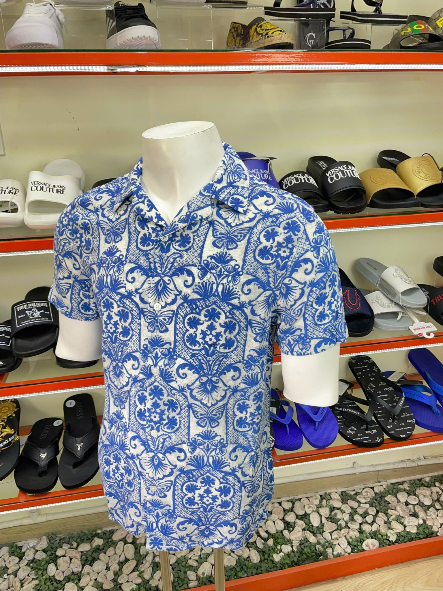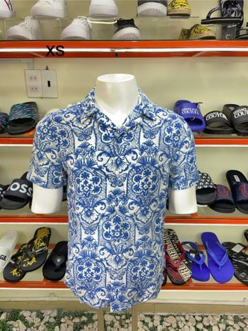Áo Sơ Mi Tay Ngắn Express Xám Hoa Xanh - New - 01698307
