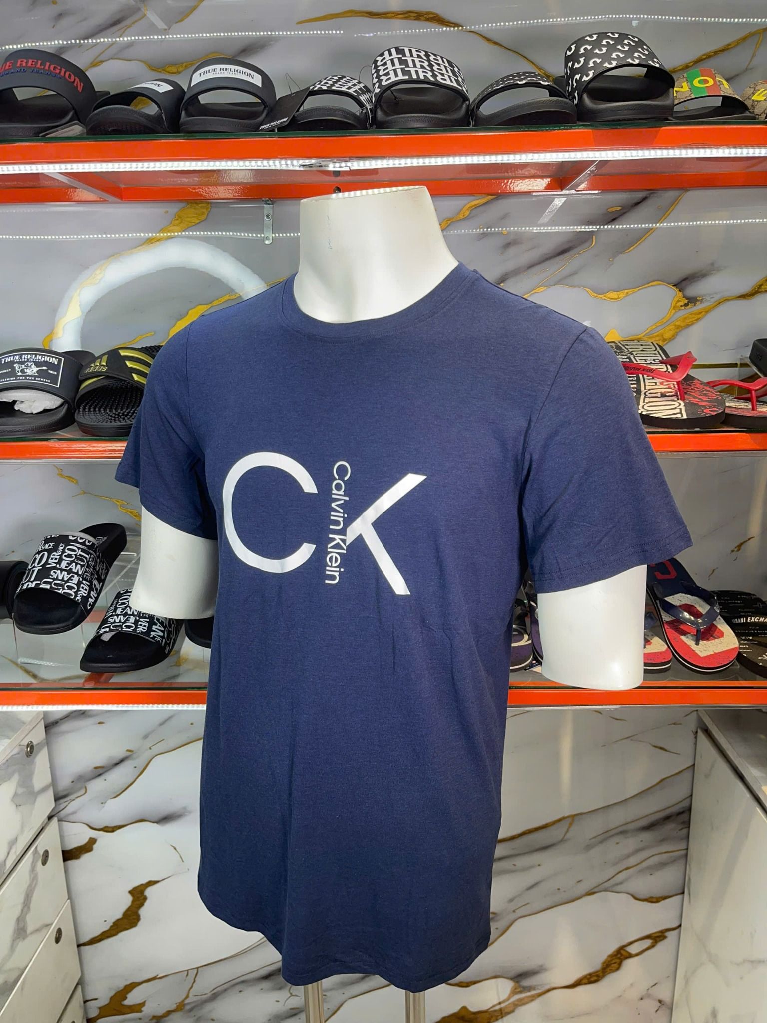 Áo Thun CK Calvin Klein Xanh Navy Chữ Trắng - New - A34M394545