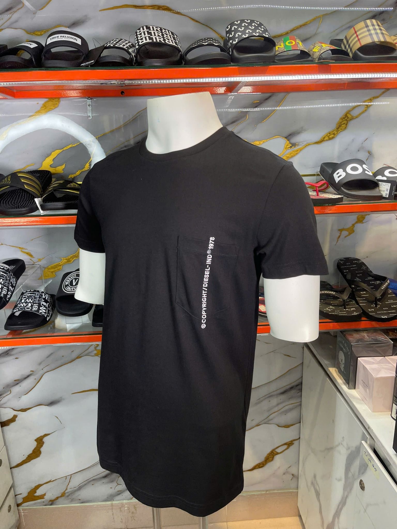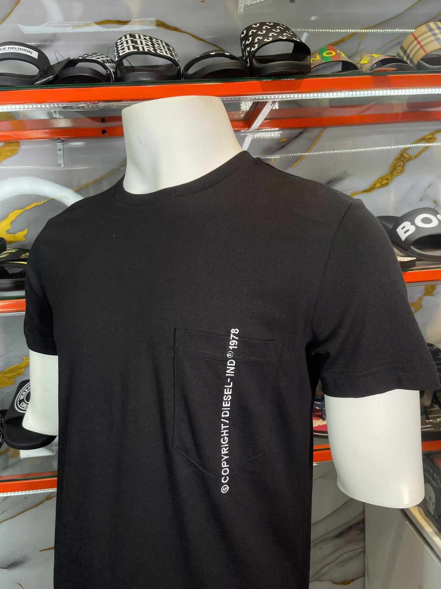 Áo Thun Diesel Đen Thêu Chữ Trắng Có Túi - New - A19001RPATI