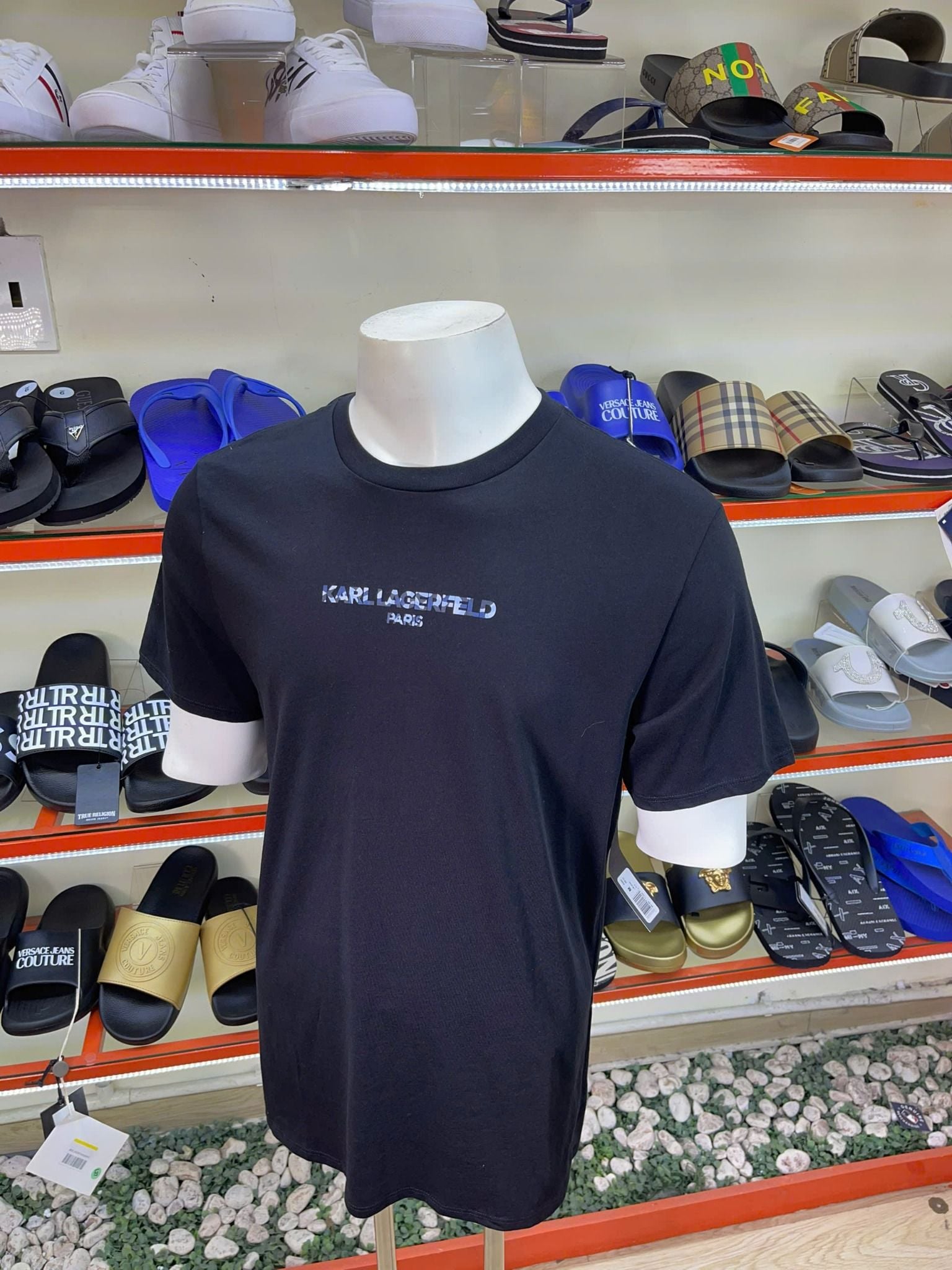 Mua Áo Thun Karl Lagerfeld Đen Chữ Xanh Sọc Nhỏ - New - LM5G2069 chính hãng HCM