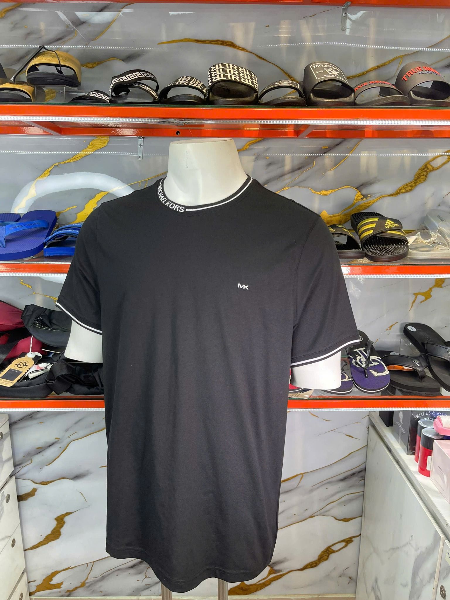Mua Áo Thun Michael Kors Đen Cổ Viền Chữ Trắng - New - KT453WFV4 chính hãng HCM