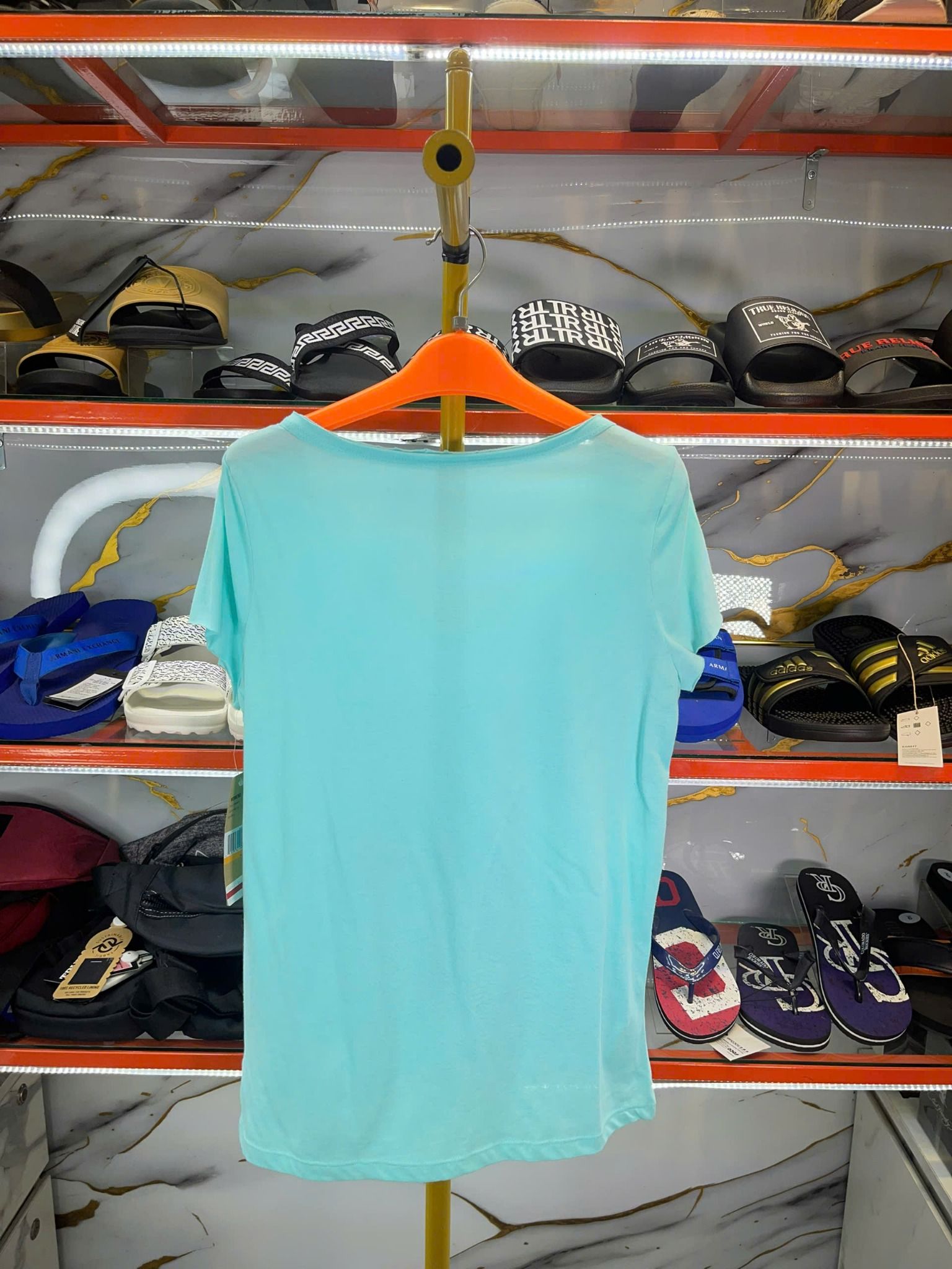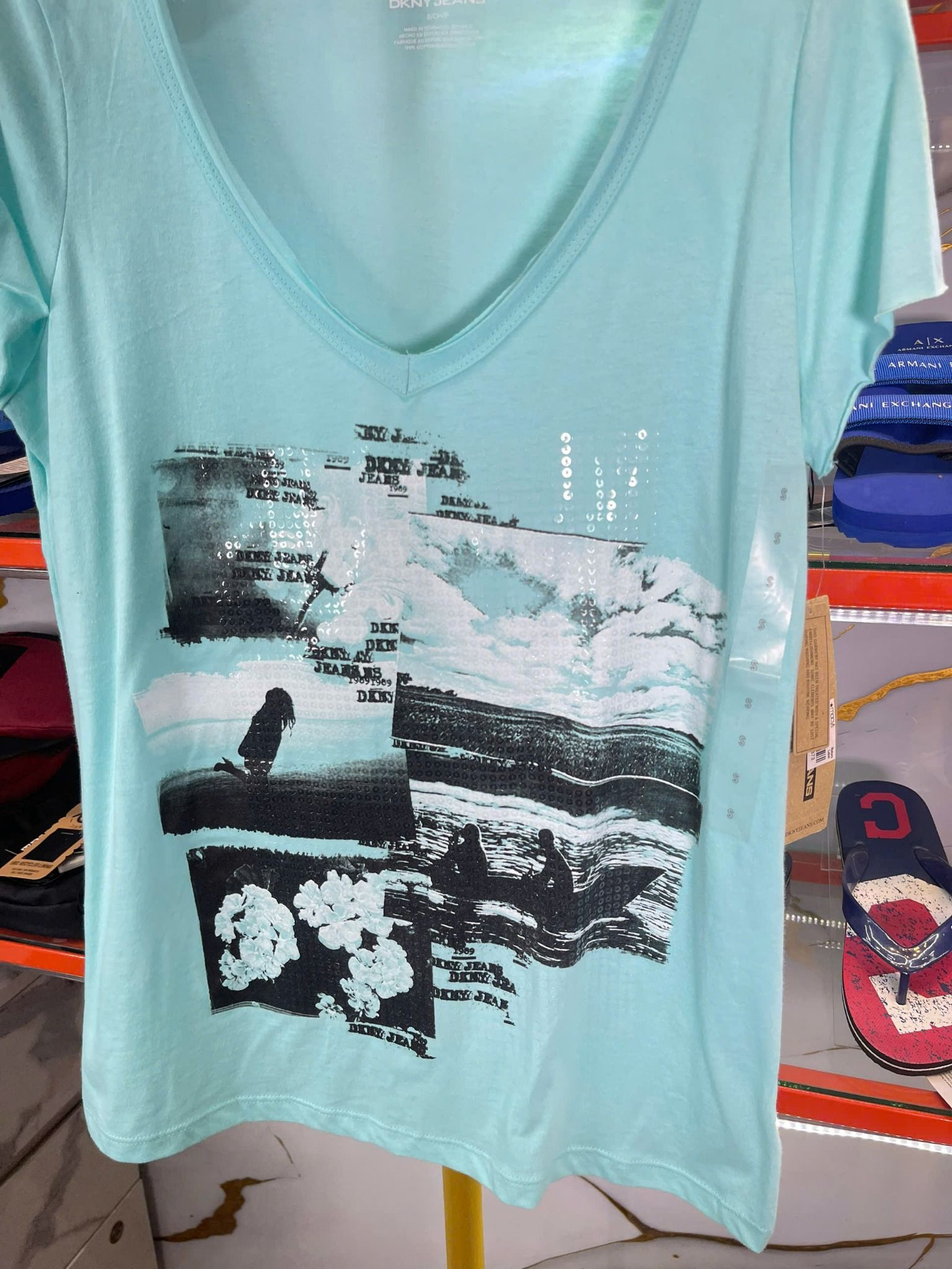 Mua Áo Thun Nữ Cổ Tim DKNY Xanh Bạc Hà Hình Đen - New - KCMUK829 chính hãng HCM