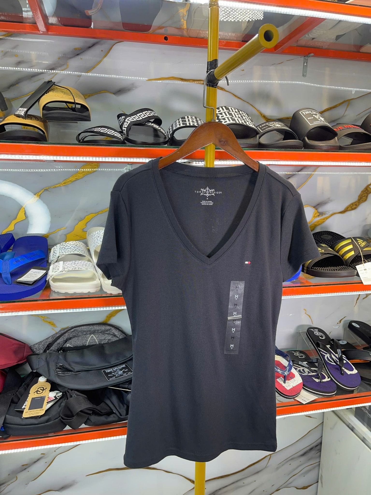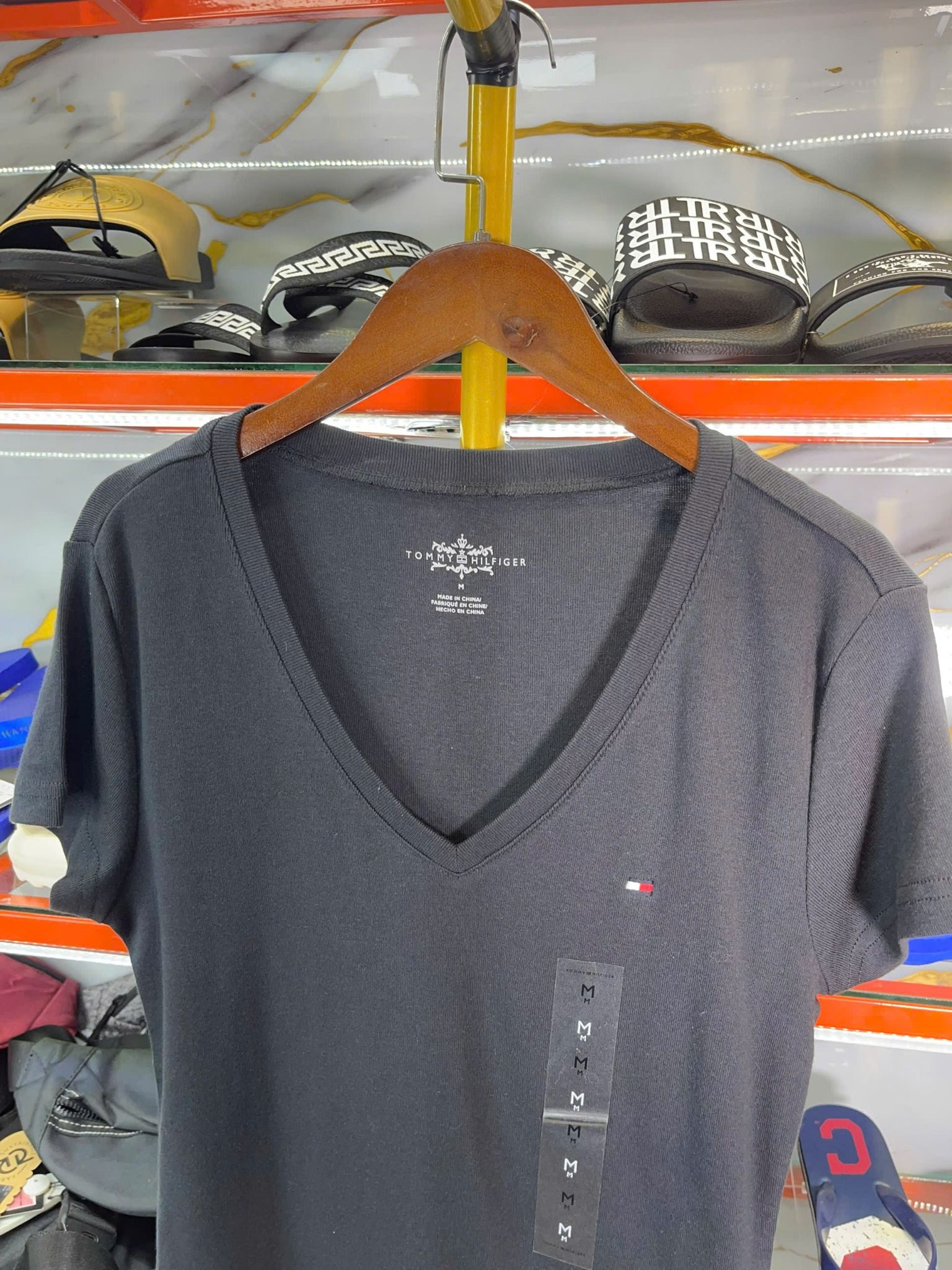 Thiên Đường Hàng Hiệu cung cấp sản phẩm Áo Thun Nữ Cổ Tim Tommy Hilfiger Đen Trơn - New - I27377 chính hãng nhập mới từ Mỹ