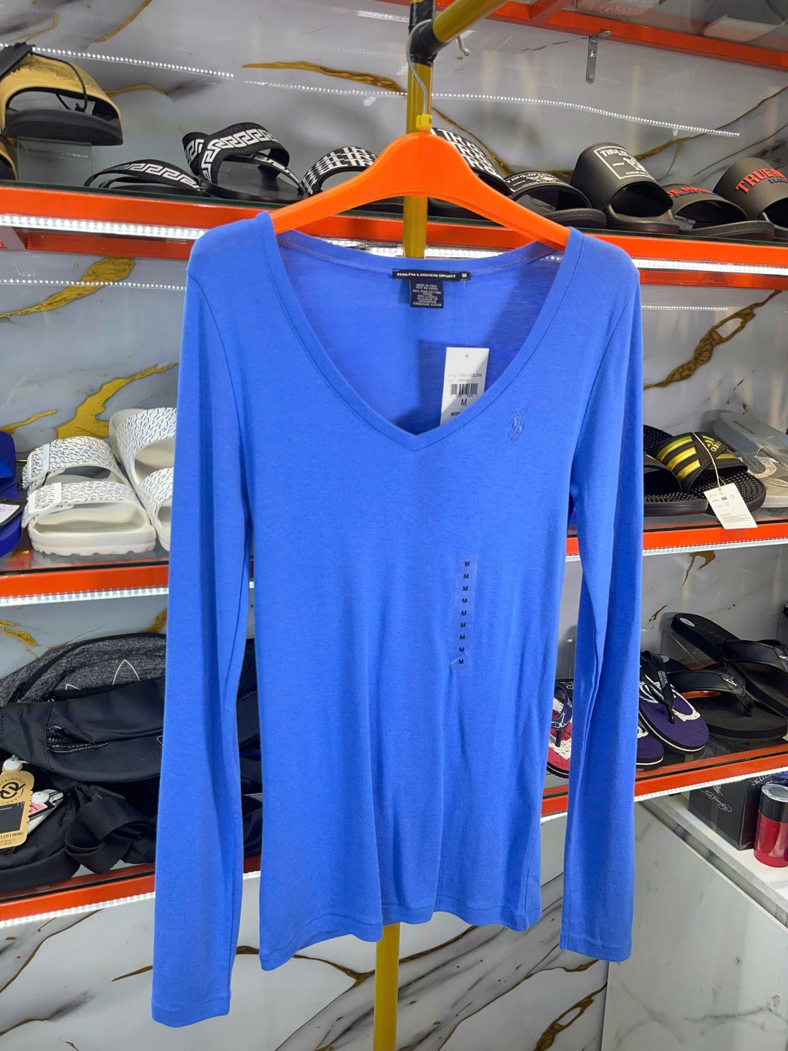 Mua Áo Thun Tay Dài Nữ Cổ Tim Ralph Lauren Xanh Trơn - New - 1282421CLJVN chính hãng HCM