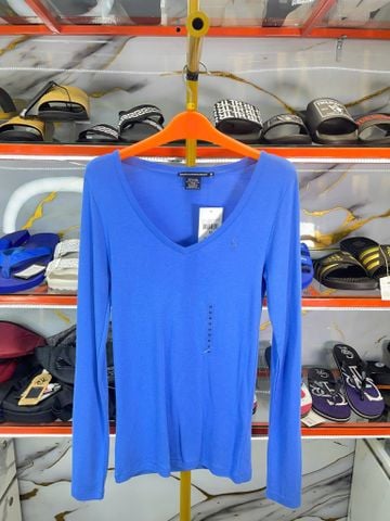Áo Thun Tay Dài Nữ Cổ Tim Ralph Lauren Xanh Trơn - New - 1282421CLJVN