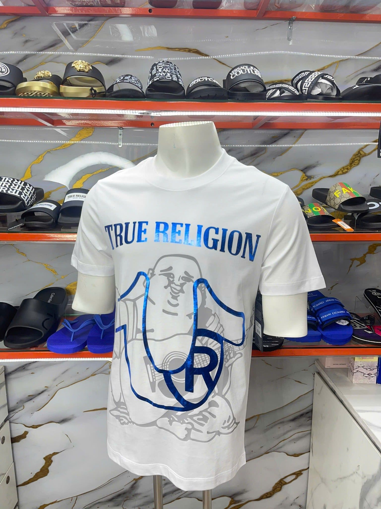 Mua Áo Thun True Religion Trắng Chữ Xanh Ông Địa Xám - New - 700509 chính hãng HCM