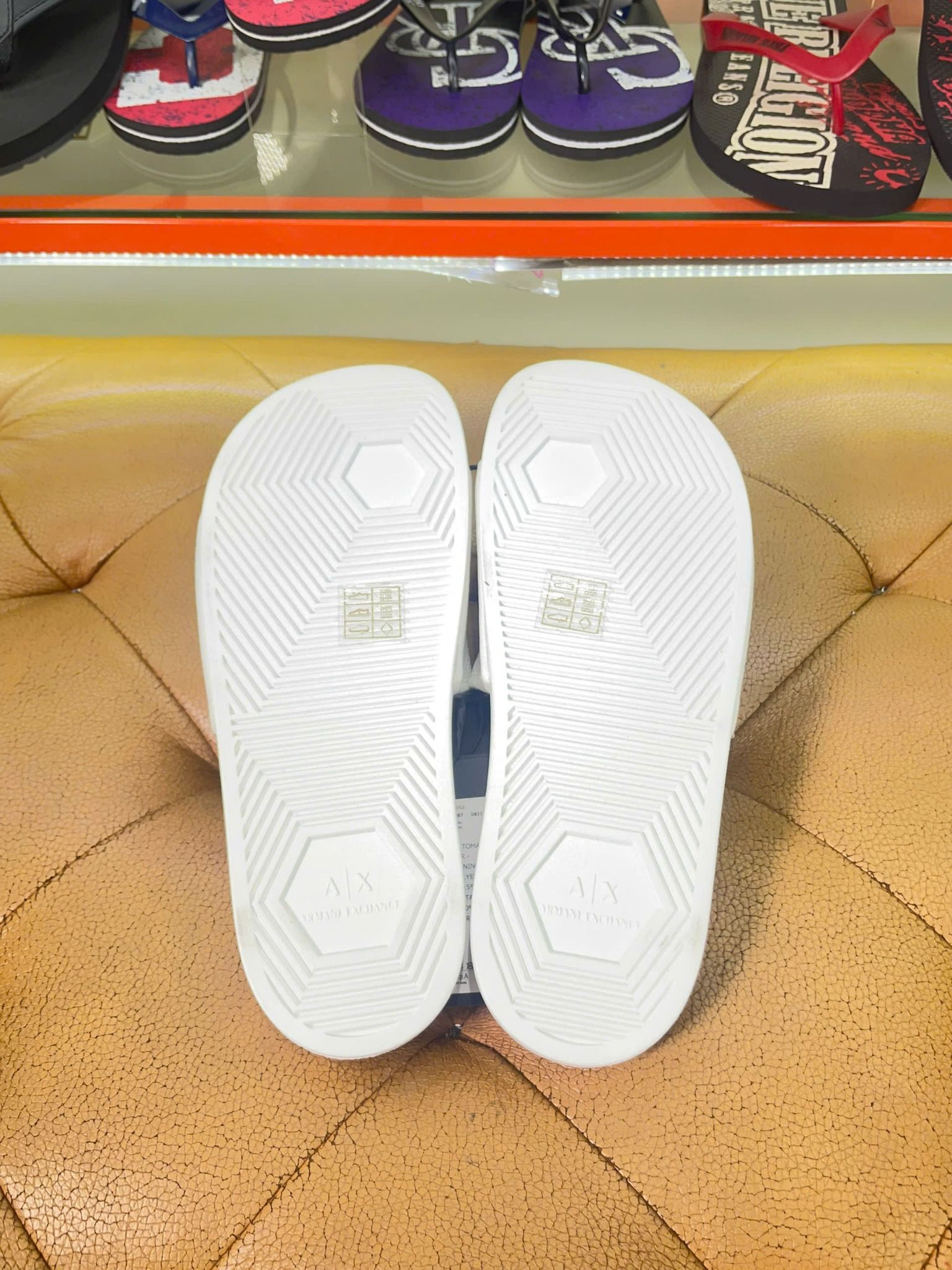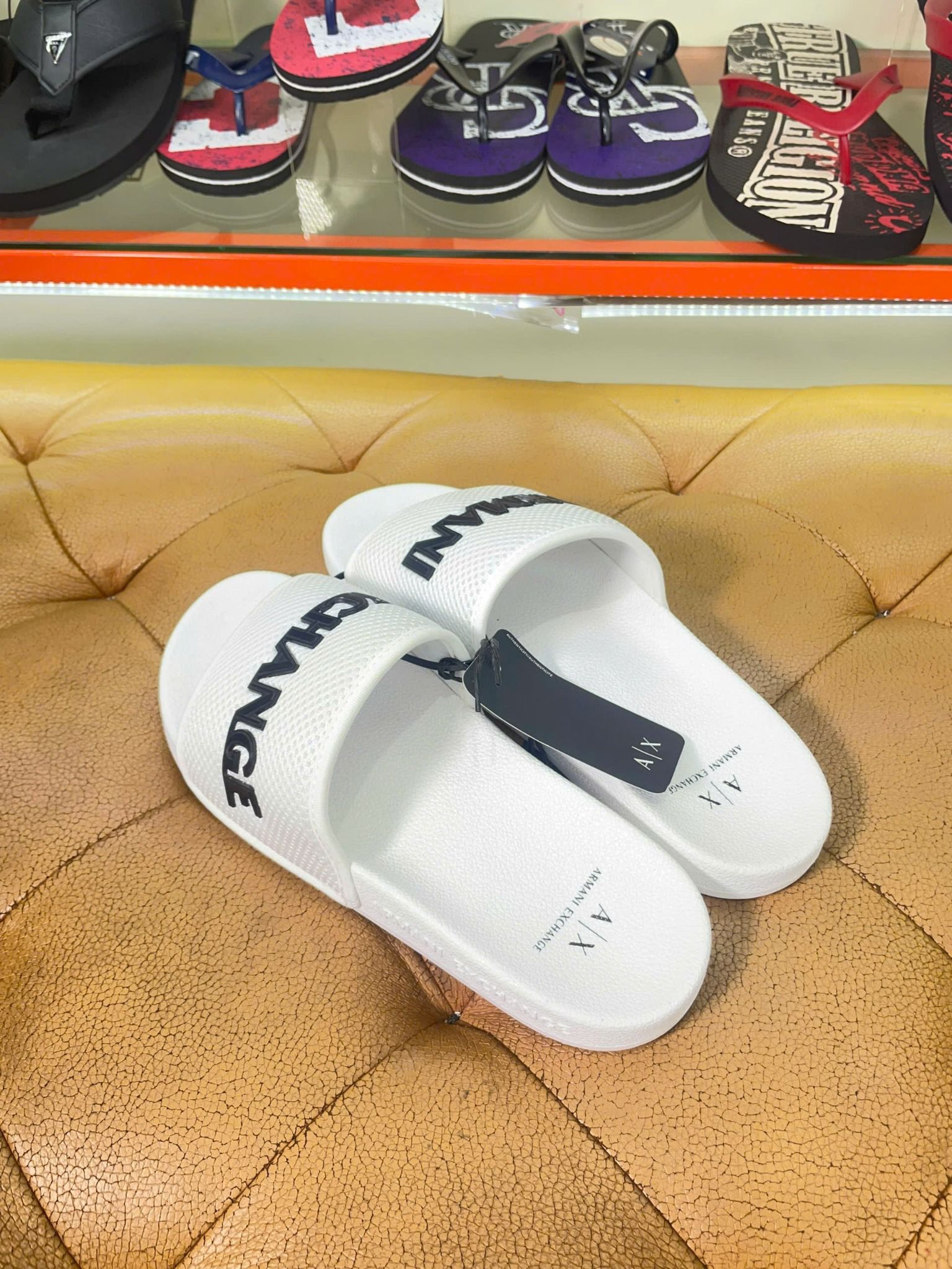 Thụy Buôn Vua cung cấp sản phẩm Dép A/X Armani Exchange Trắng Chữ Đen - New - XUP001 XV087 chính hãng nhập mới từ Mỹ
