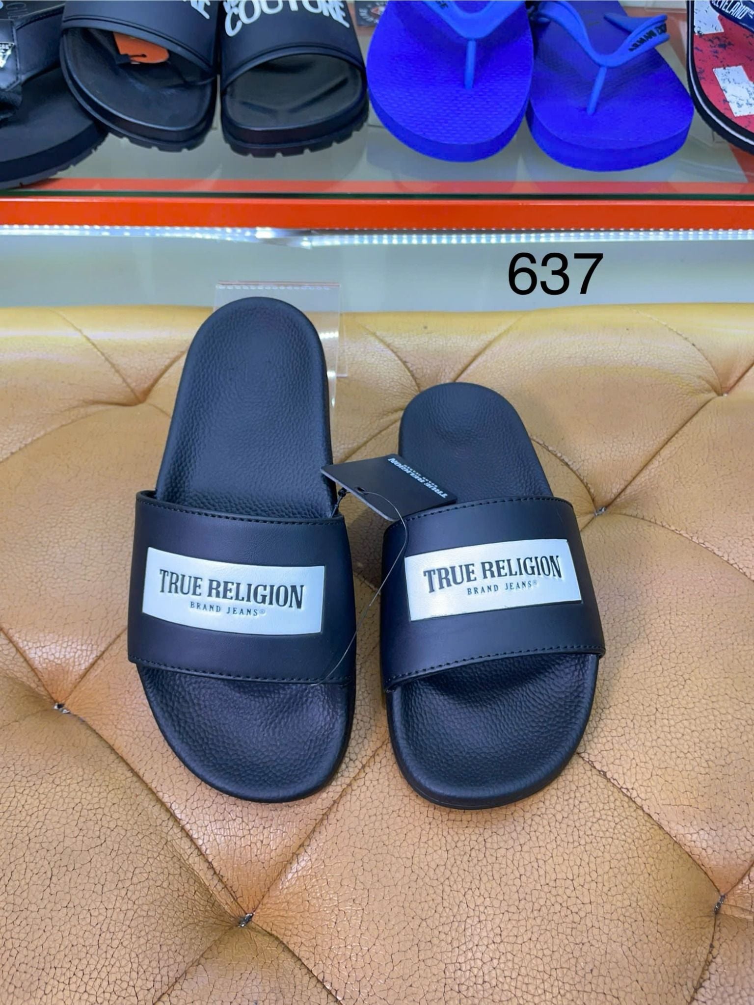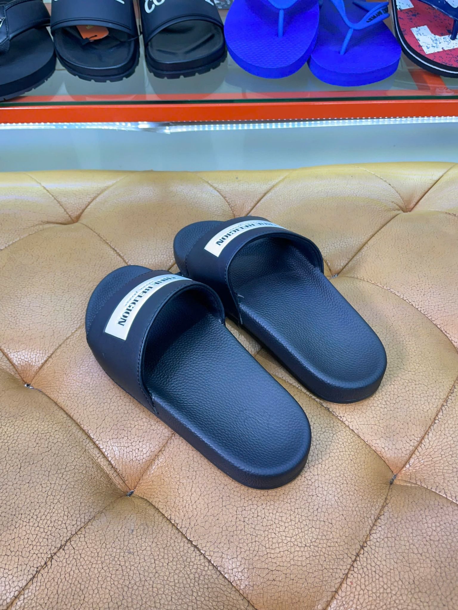 Mua Dép True Religion Đen Hình Trắng - New - TRSLIDE026 chính hãng HCM