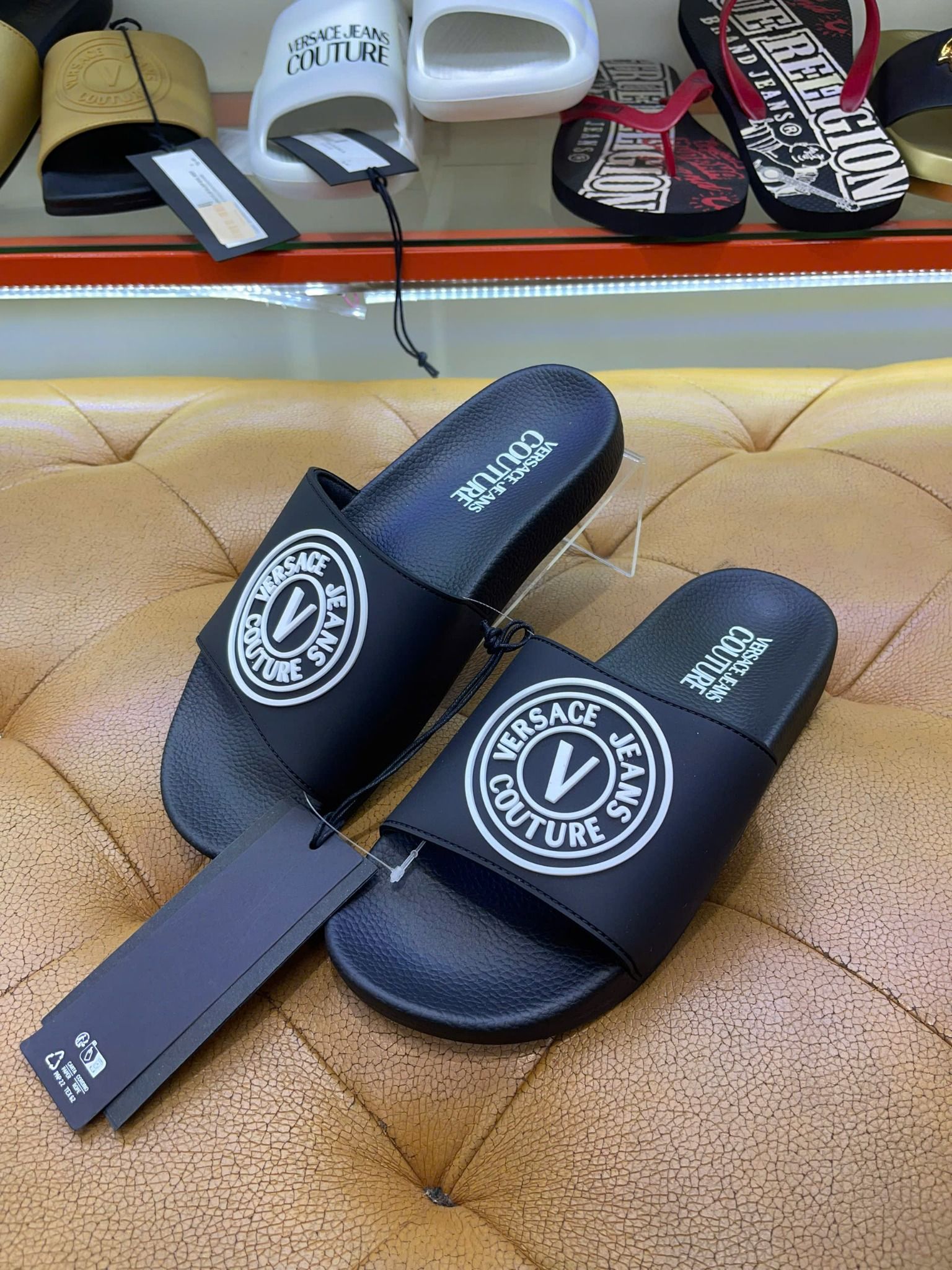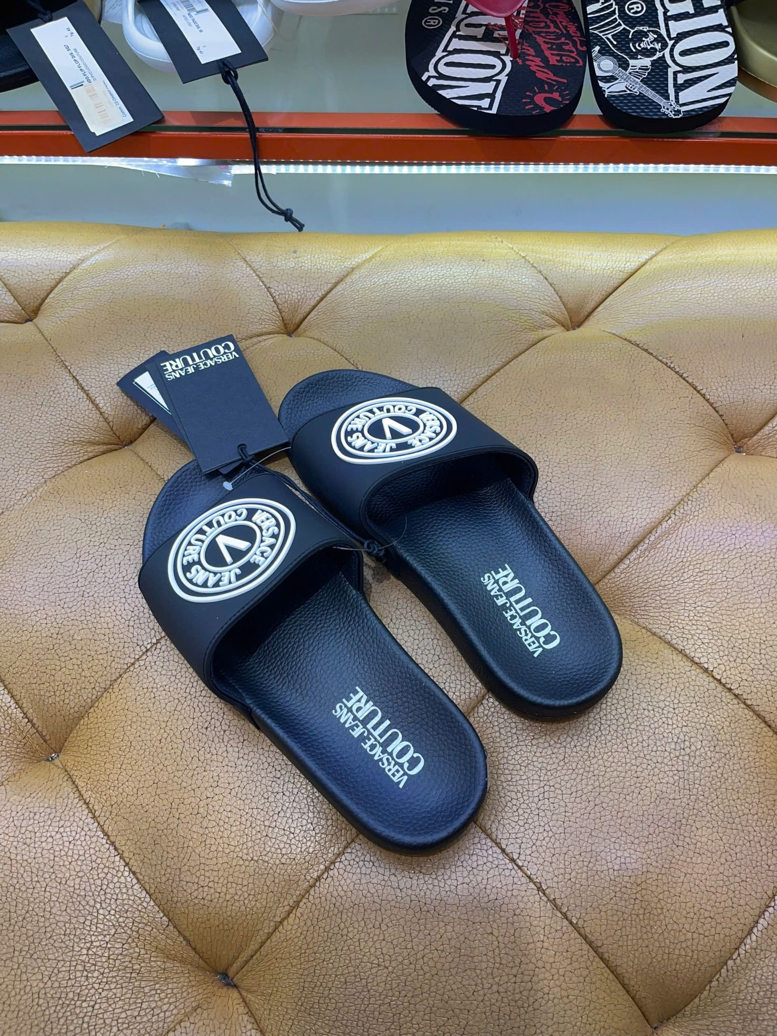 Mua Dép Versace Đen Hình Tròn Trắng - New - 74YA3SQ3 chính hãng HCM
