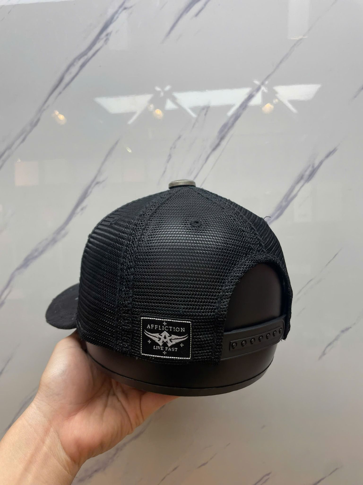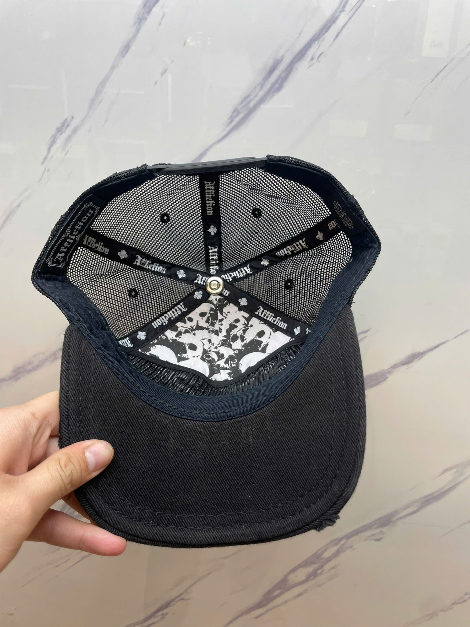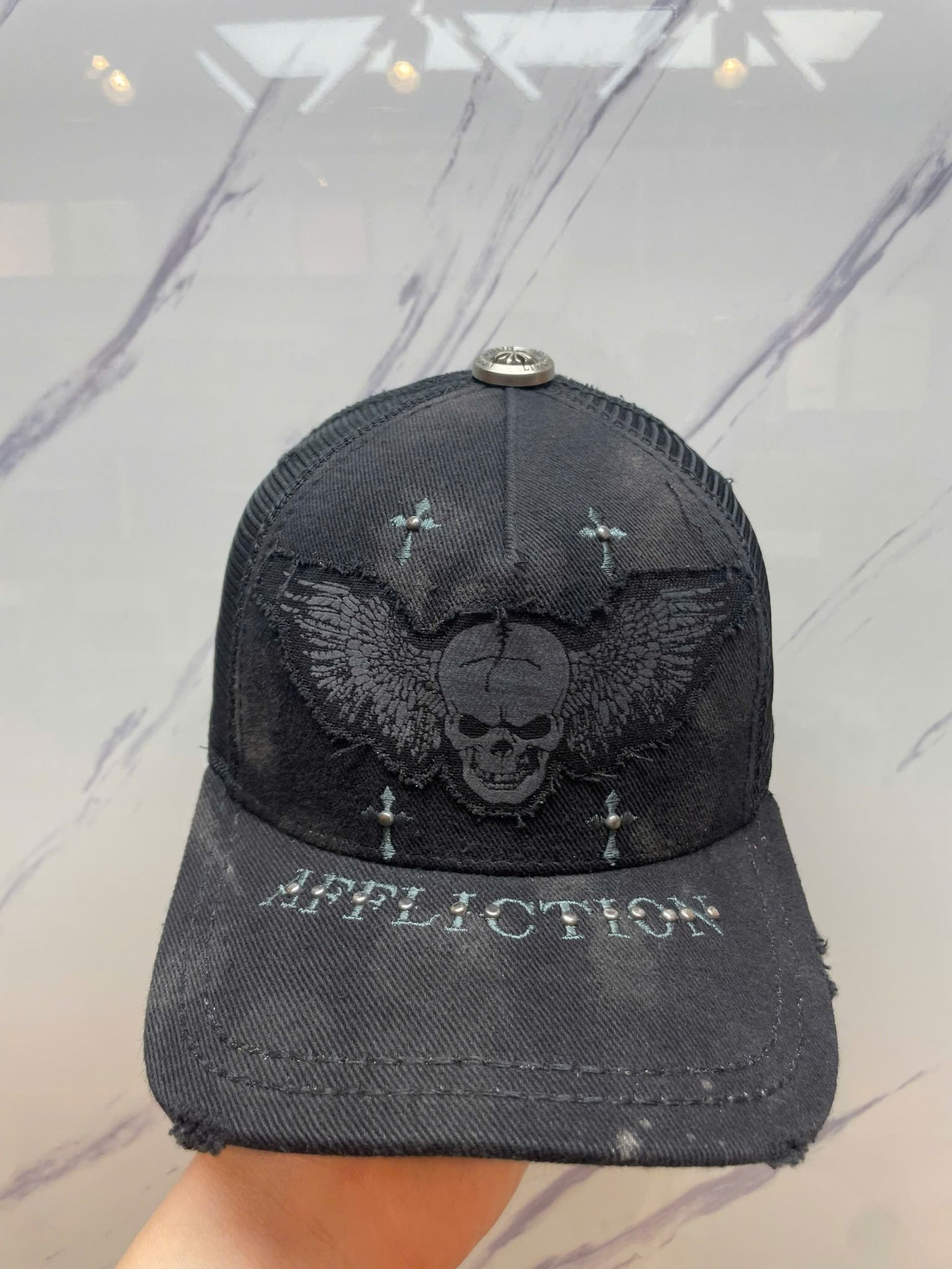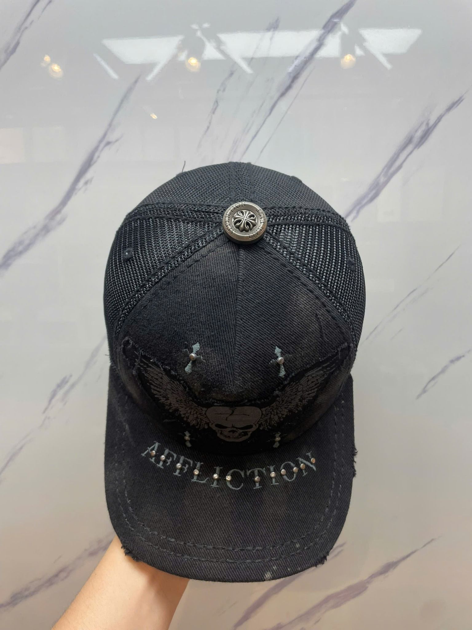 Nón Lướii Affliction Đen Đầu Lâu Đôi Cánh Chữ Xanh - New Không Tag - N378