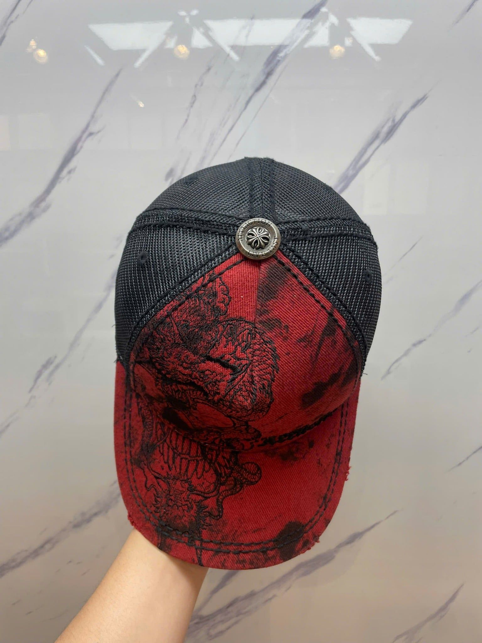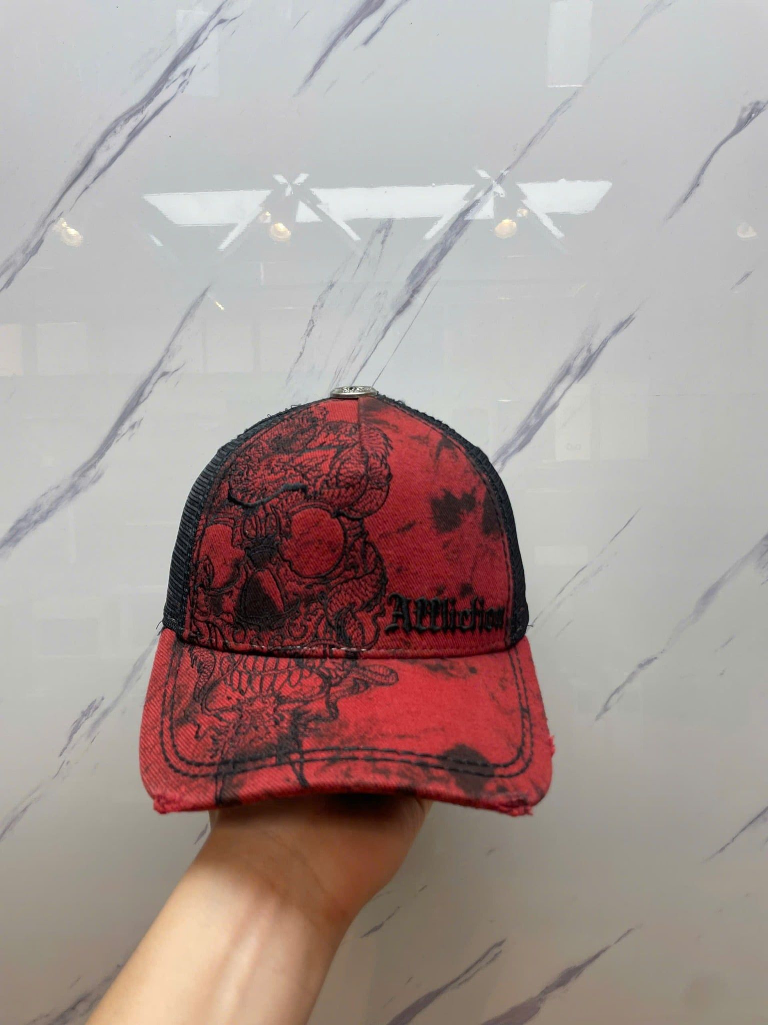 Thiên Đường Hàng Hiệu cung cấp sản phẩm Nón Lướii Affliction Đen Đỏ Đầu Lâu Rồng - Like New - N360 chính hãng nhập mới từ Mỹ