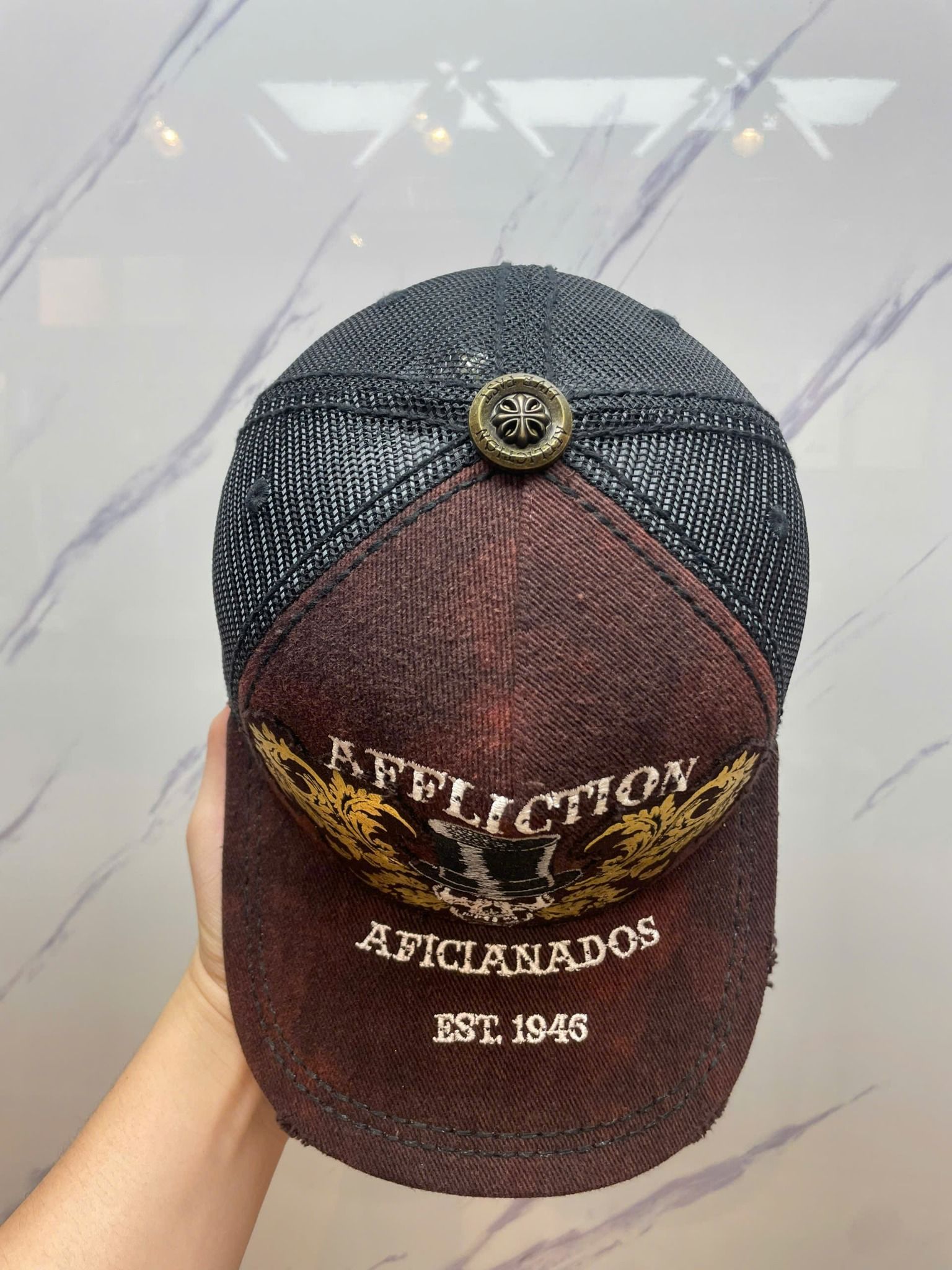 Nón Lướii Affliction Đen Nâu Đầu Lâu Đội Mũ - New Không Tag - N366