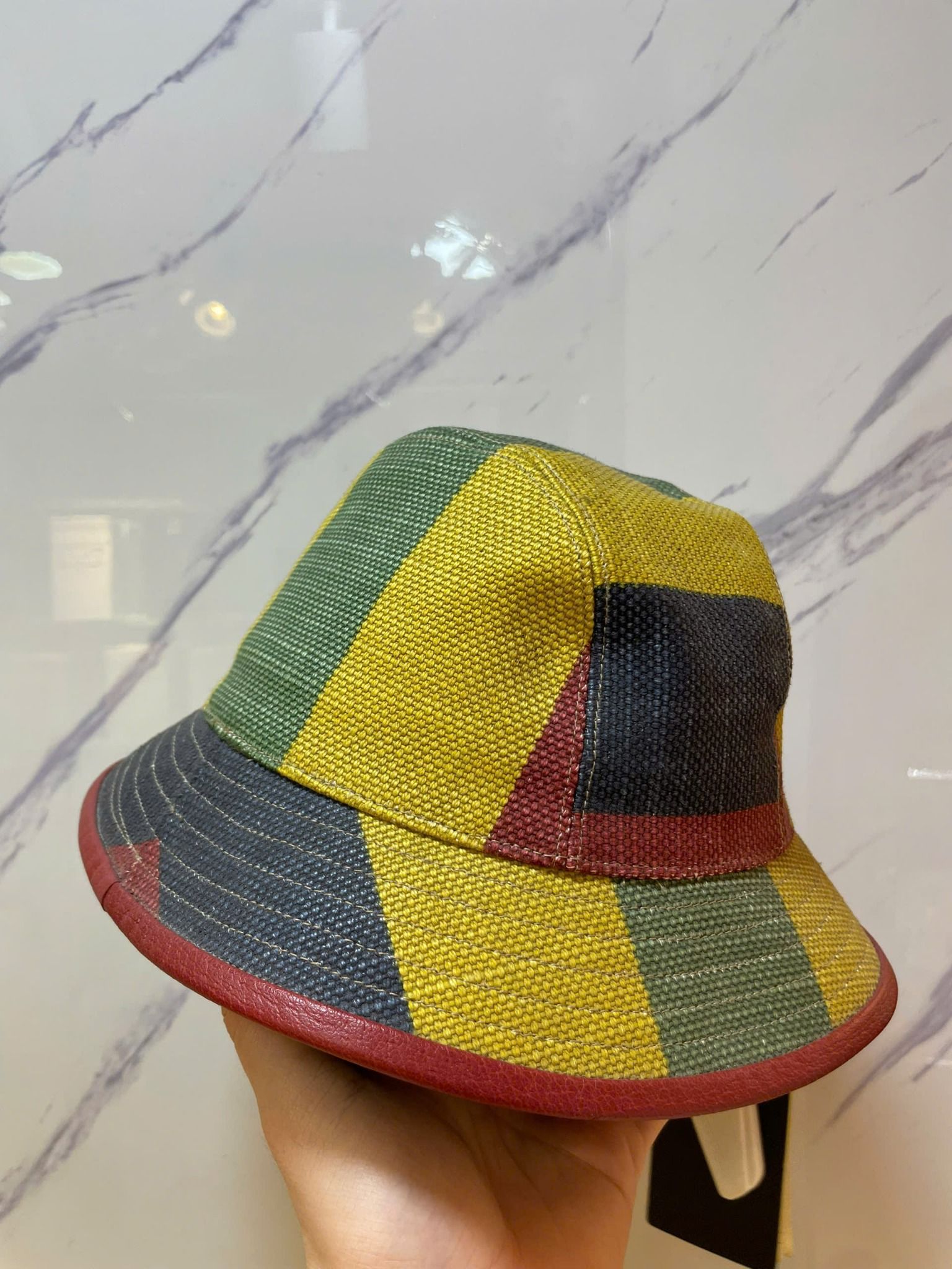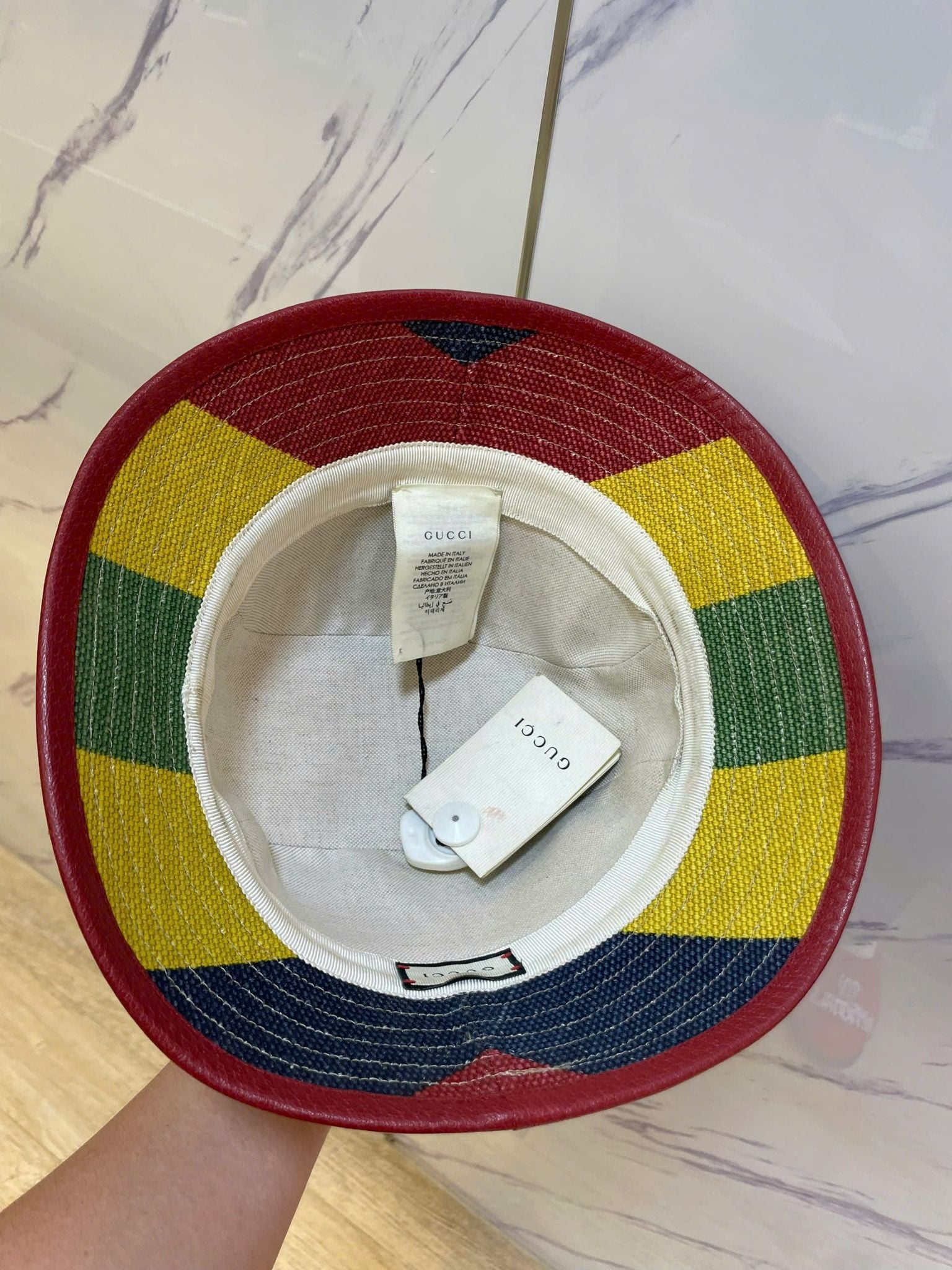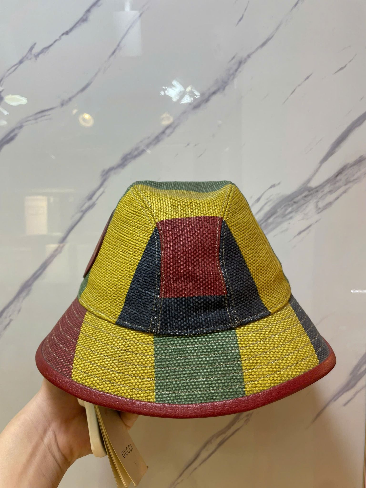 1 / Mua Nón Bucket Gucci Vàng Sọc Đỏ Xanh - New - 627158 chính hãng HCM