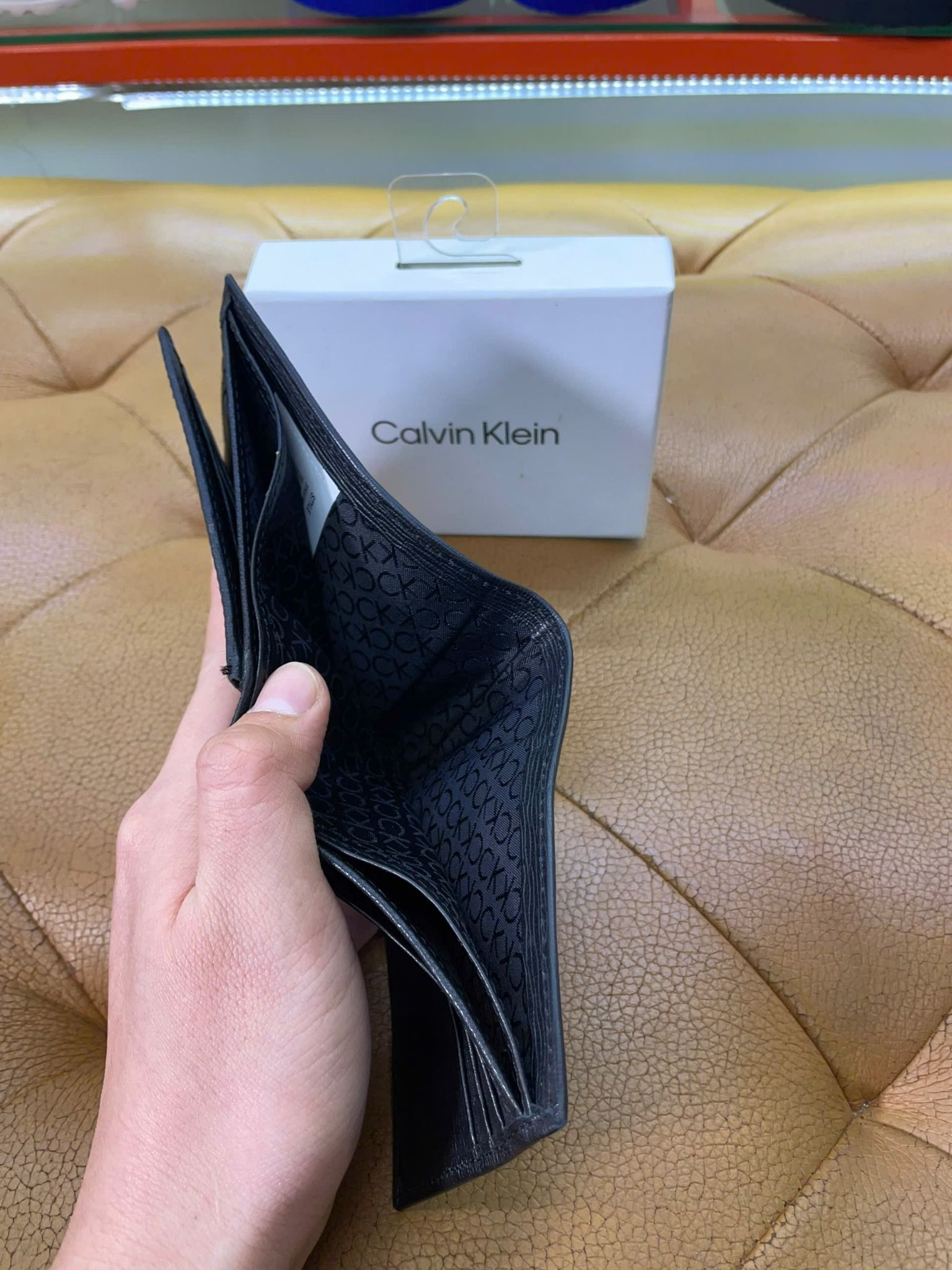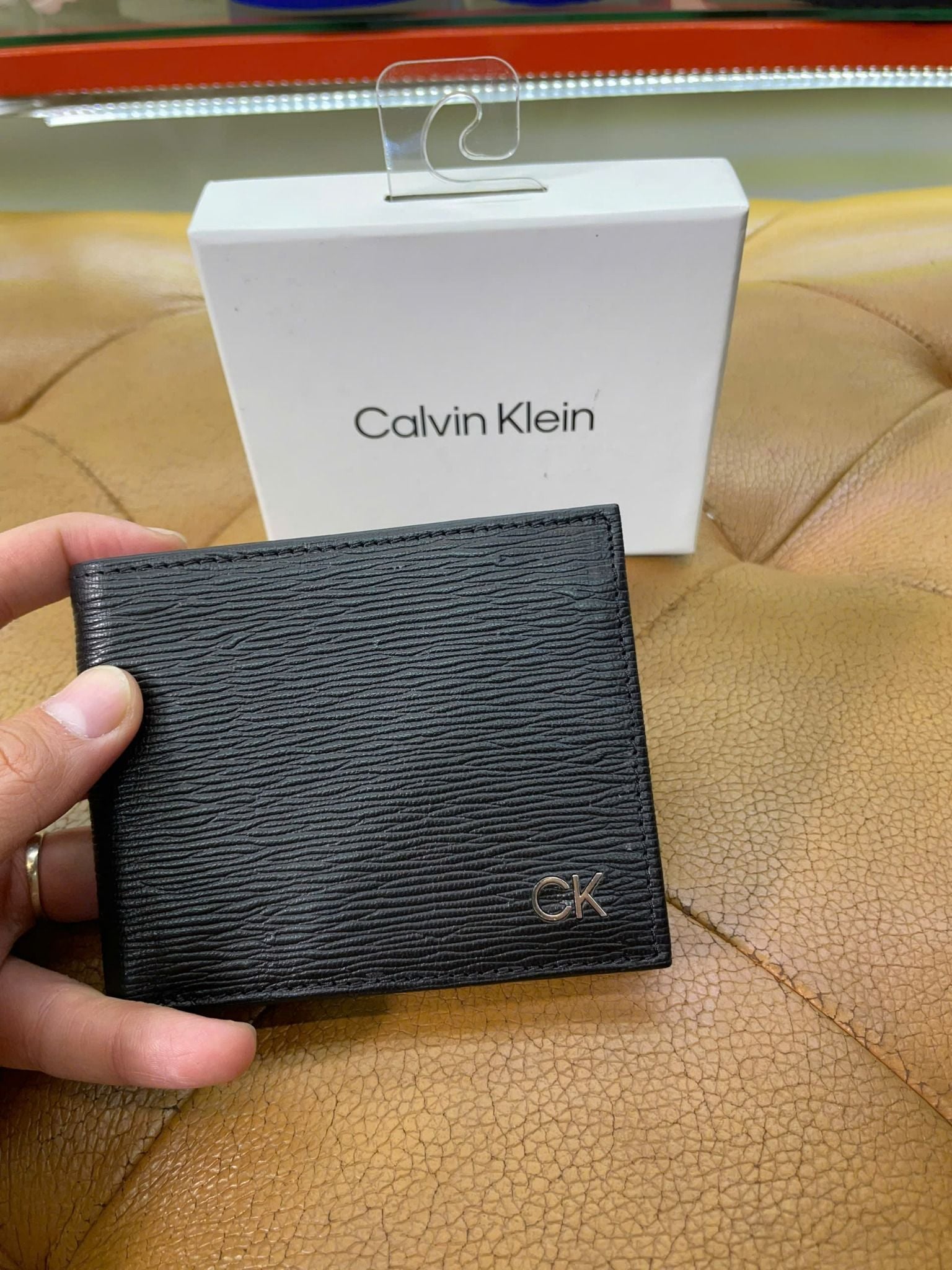Ví Ngang CK Calvin Klein Đen Vân Ngang Chữ Bạc - New - 31KA130003